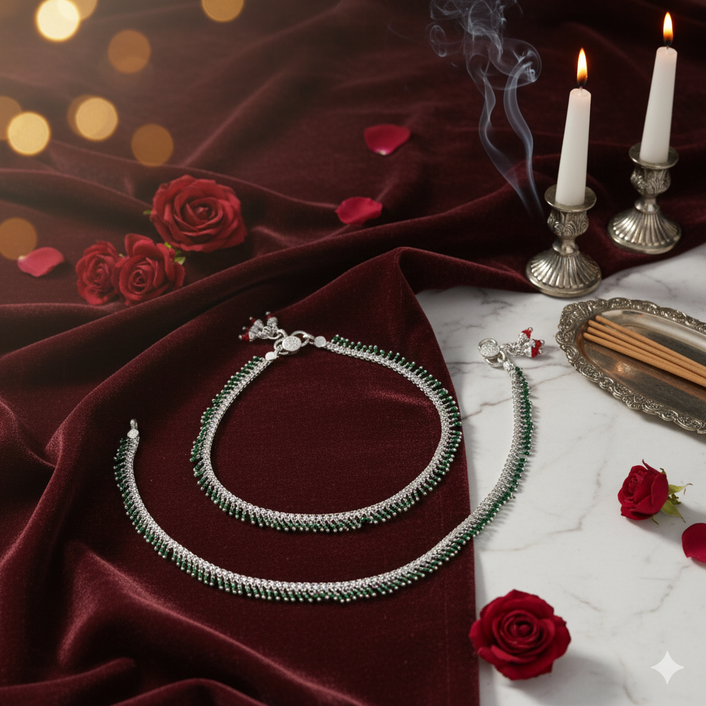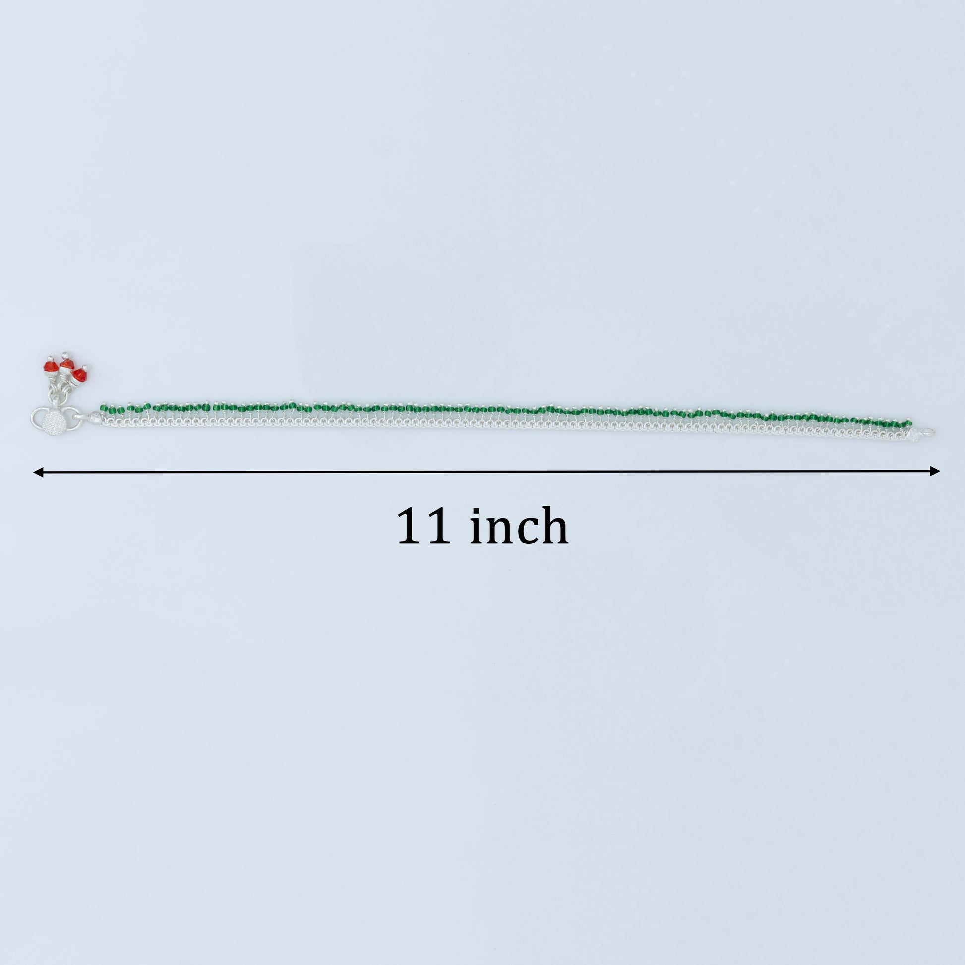 Silver Green Beaded Payal Minimal Traditional Anklet for Everyday Wear
