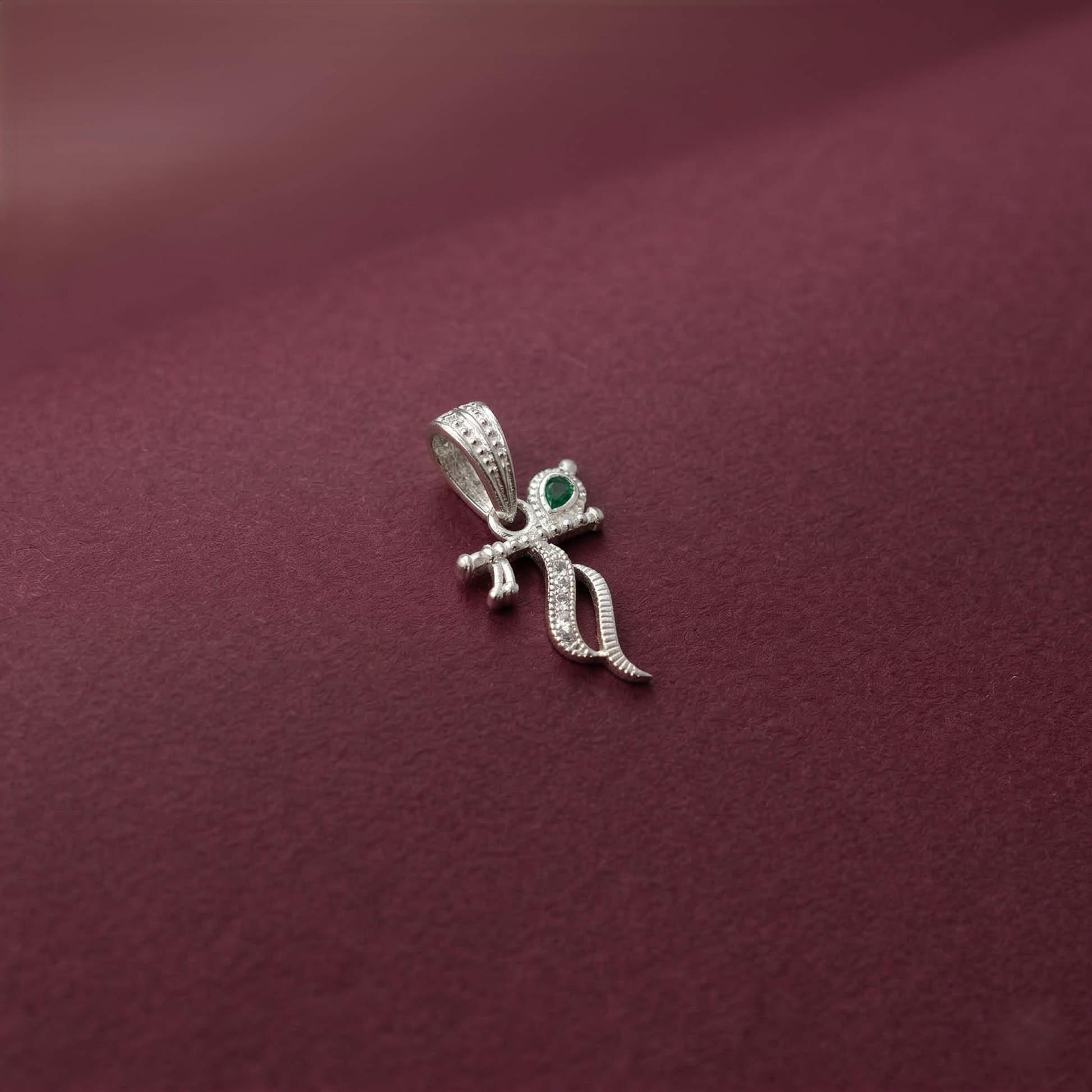 Embrace divine grace with this exquisite Silver Krishna Flute Pendant, a timeless symbol of spiritual devotion and celestial music. Crafted in lustrous sterling silver, this pendant captures the essence of Lord Krishna's eternal charm and is perfect for both men and women seeking meaningful religious jewellery. The intricately designed flute motif reflects the legendary tales of Radha and Krishna, making it an ideal gift for festivals, spiritual occasions, or personal spiritual practice. The pendant's elegant proportions ensure comfortable everyday wear while maintaining its sacred significance. Ideal for layering with chains or wearing as a standalone statement piece, this Krishna Flute Pendant serves as a beautiful reminder of devotion, love, and divine connection. A cherished addition to any jewellery collection for those who honour Hindu traditions and spiritual symbolism.