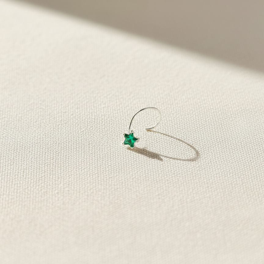 Crafted from high-quality silver, this nose pin features a delicate star design adorned with vibrant multicolour stones. Its expert craftsmanship ensures durability while adding a subtle yet striking accent to your look. Ideal for those seeking a refined accessory that blends traditional charm with contemporary style.