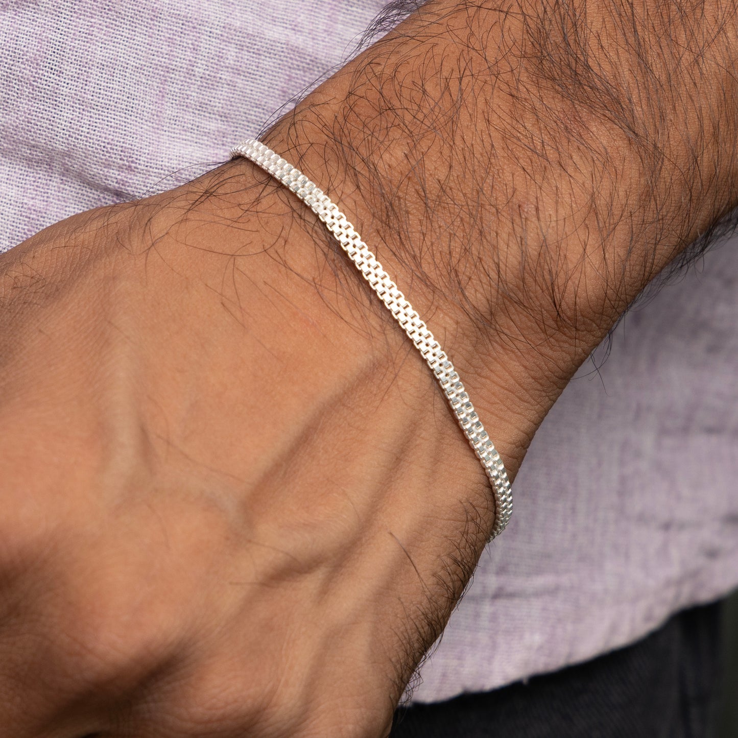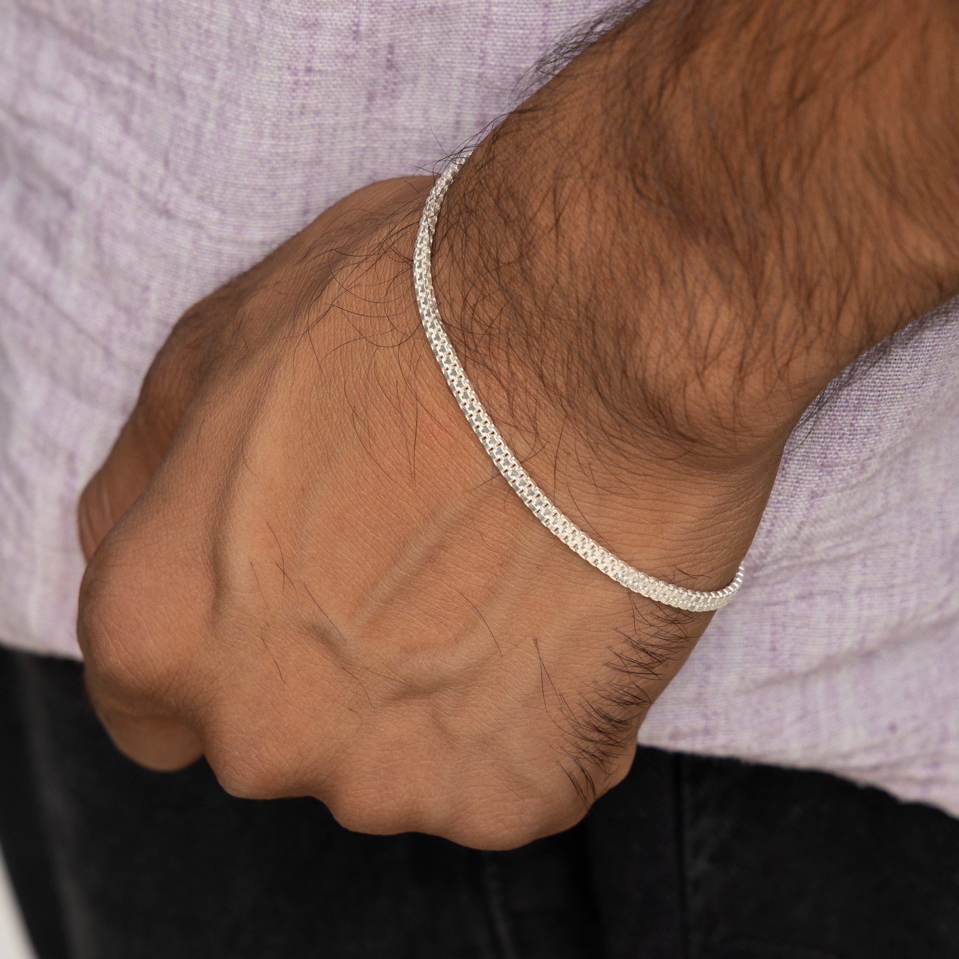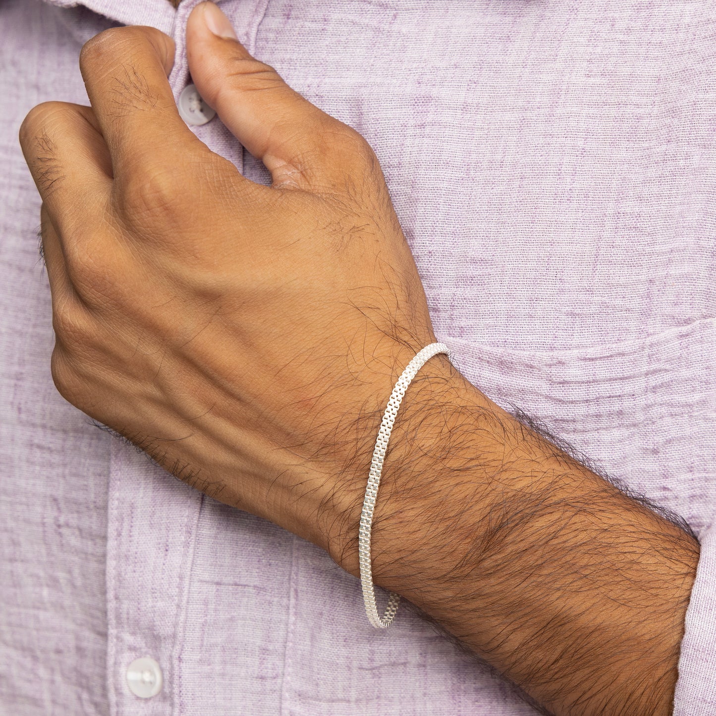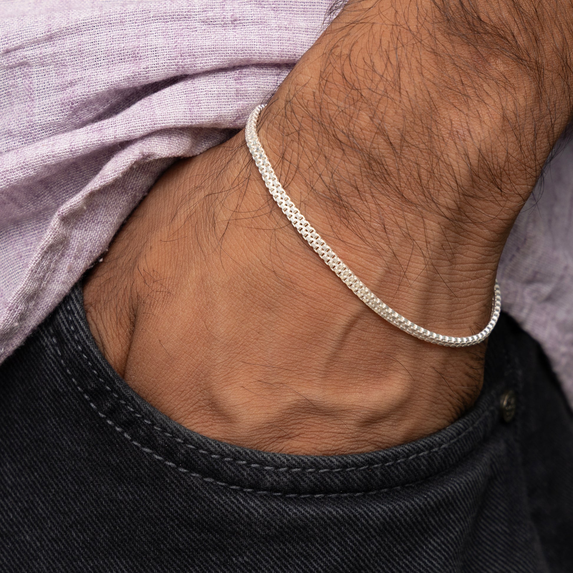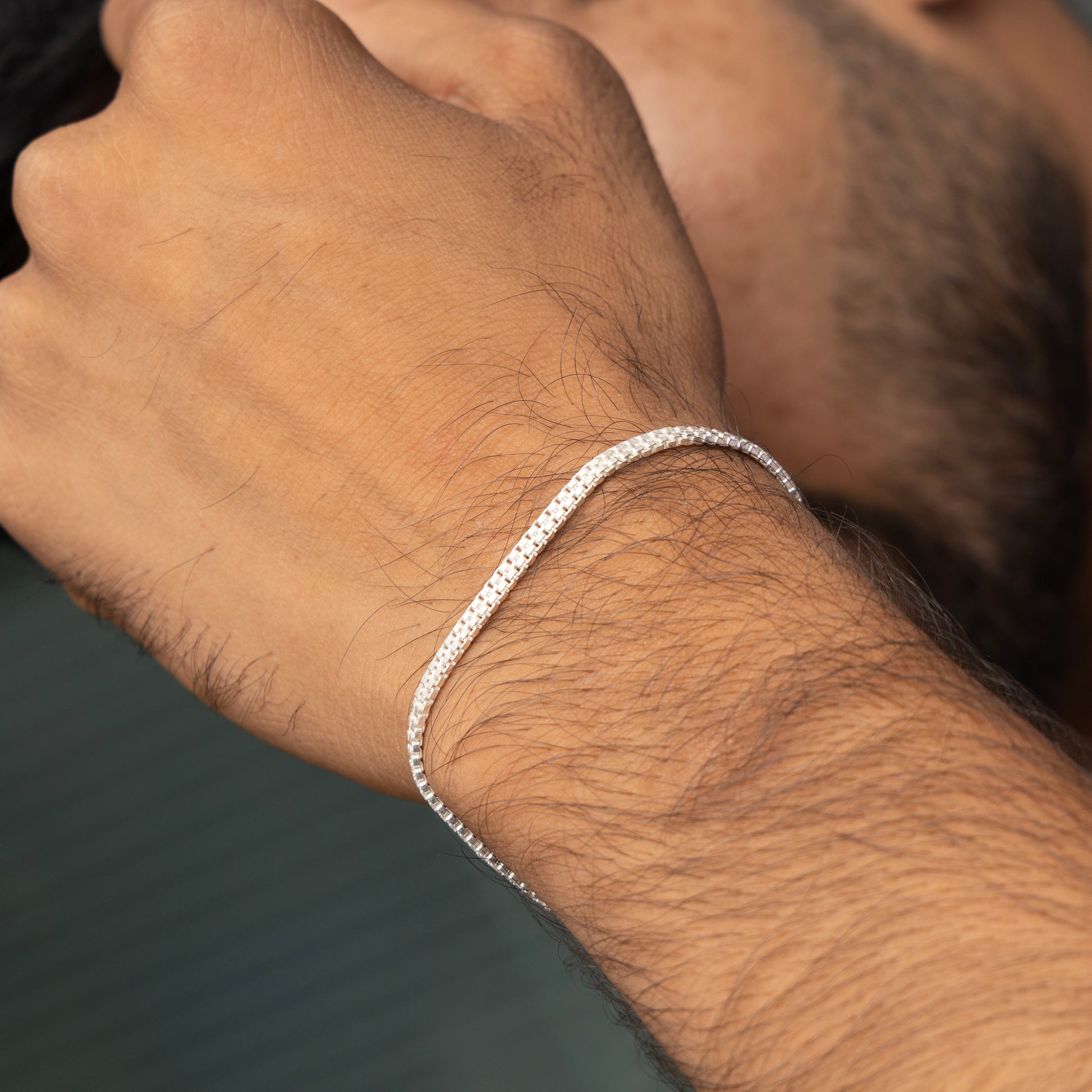 Elevate your style with our Silver Simple Square Box Design Chain Bracelet for Boys. This sleek and modern accessory features a minimalist square box chain design, crafted from high-quality silver. Perfect for daily wear or special occasions, it adds a touch of sophistication to any outfit. Secure and comfortable, this bracelet is an ideal choice for the fashion-forward boy.