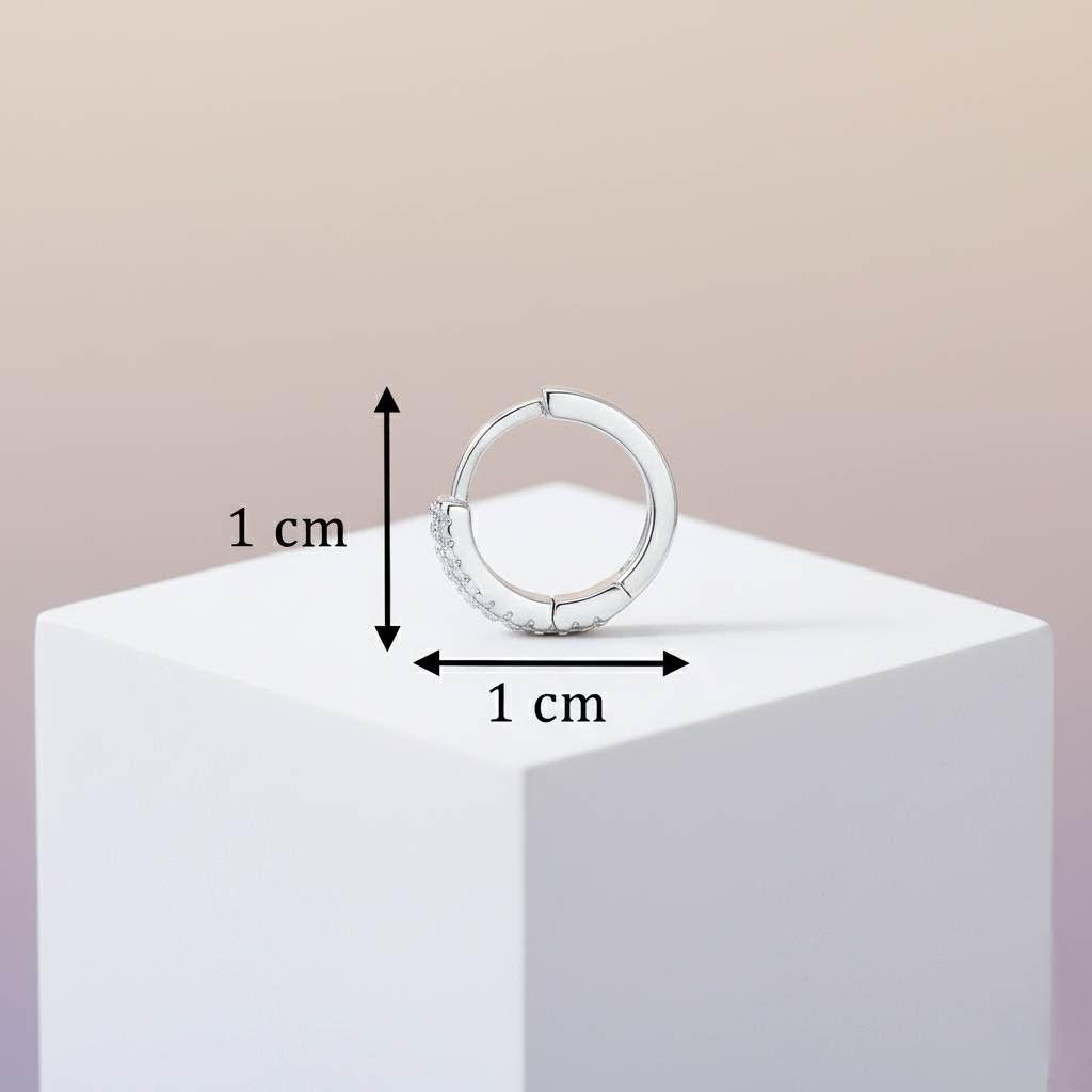 Elevate your everyday elegance with these sterling silver hoop earrings, featuring three meticulously arranged rows of cubic zirconia stones. The brilliant sparkle of premium CZ stones catches light beautifully, creating a sophisticated layered effect that transitions seamlessly from day to evening wear. Crafted with precision, these hoops offer timeless appeal with contemporary flair—a versatile addition to any jewellery collection that balances luxury aesthetics with accessible luxury.