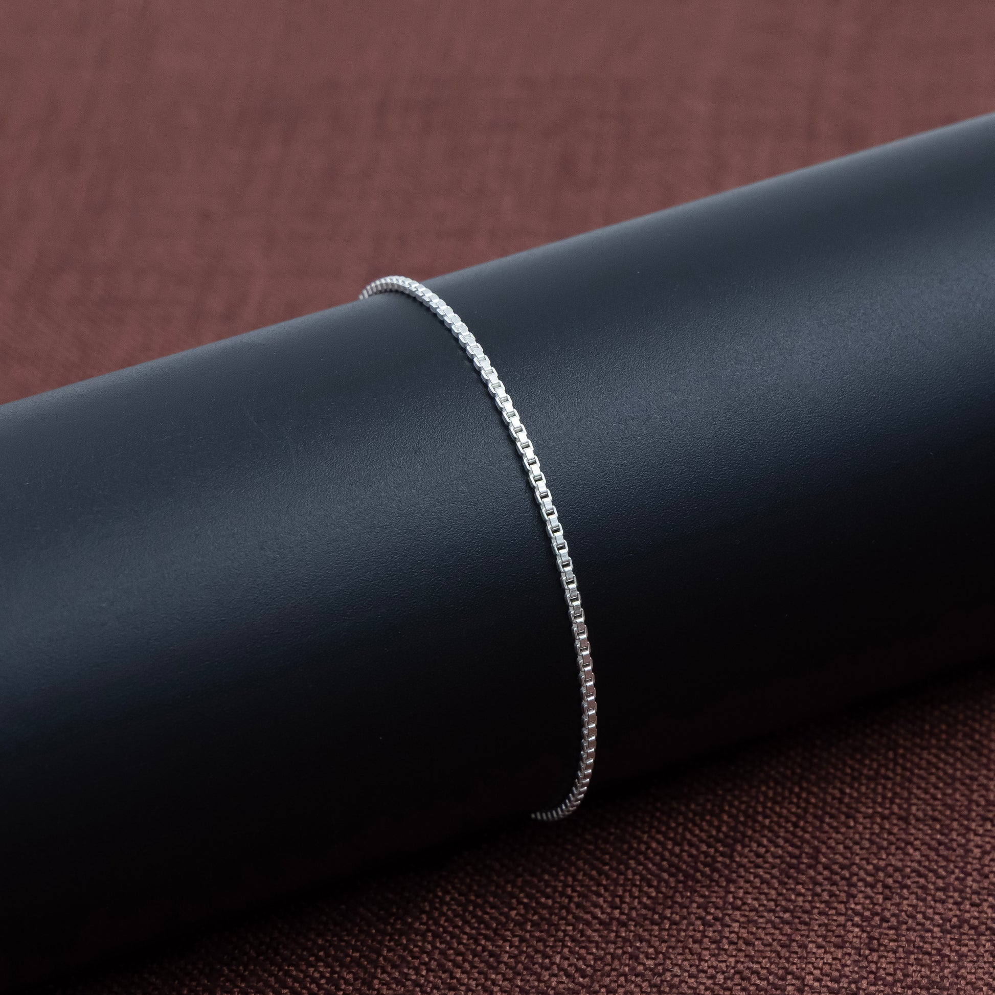 Crafted in sterling silver, this slim square snake bracelet combines refined geometry with fluid movement. The interlocking square links create a distinctive texture while maintaining a sleek, contemporary profile ideal for layering or wearing solo. The snake chain design offers flexibility and comfort for everyday wear, while the polished finish delivers a sophisticated sheen. Perfect for the modern man seeking understated luxury with architectural appeal.