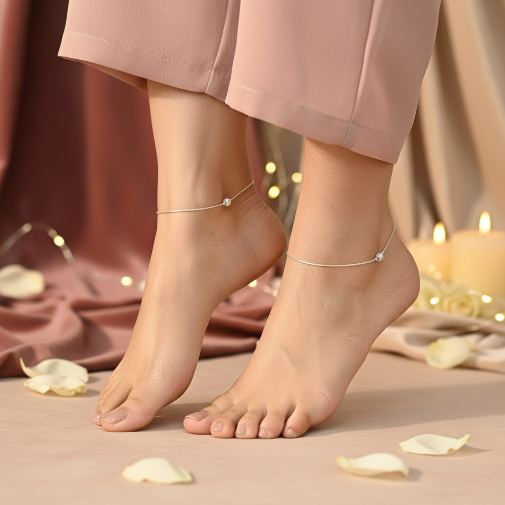 Elevate your ankle jewellery collection with this exquisite sterling silver anklet, crafted from pure 925 sterling silver. The classic bead design features meticulously arranged spherical elements that catch light beautifully, creating an understated yet sophisticated aesthetic. Perfect for layering or wearing solo, this piece transitions seamlessly from casual daywear to evening occasions. The durable construction ensures lasting wear, while the timeless design remains perpetually relevant. An ideal choice for those who appreciate refined craftsmanship and enduring elegance in their jewellery selections.