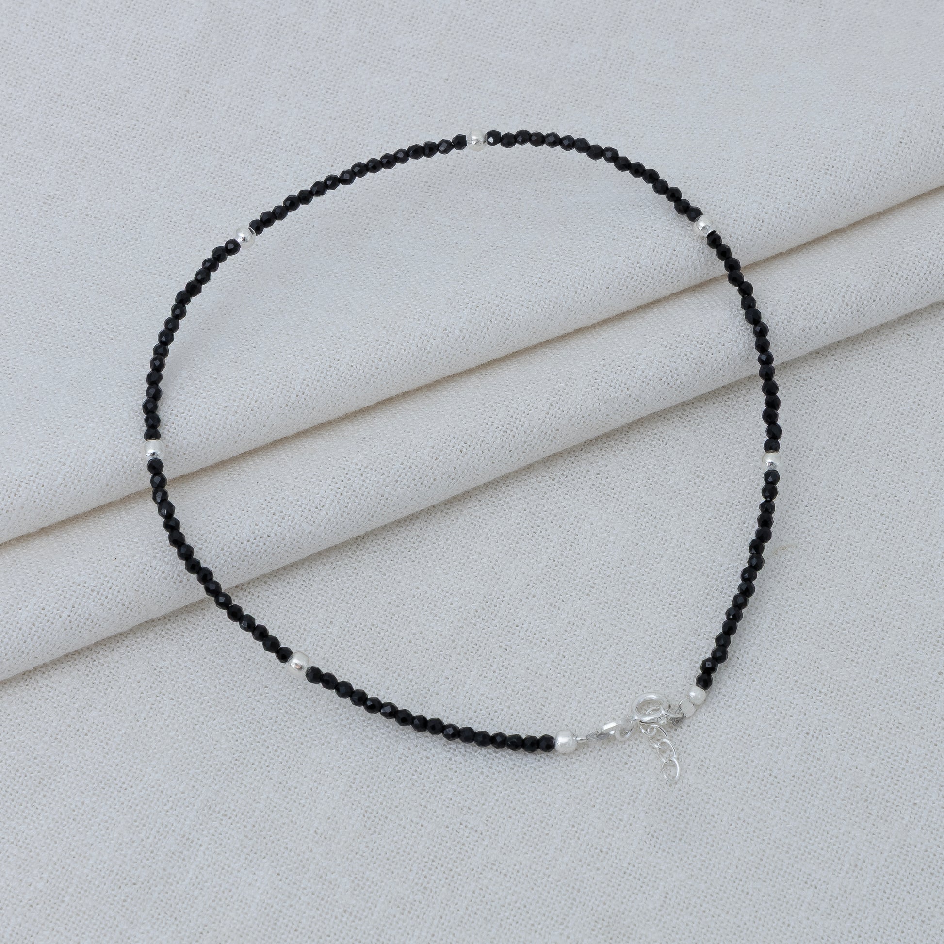 Sterling Silver Black Bead Anklet (Adjustable)