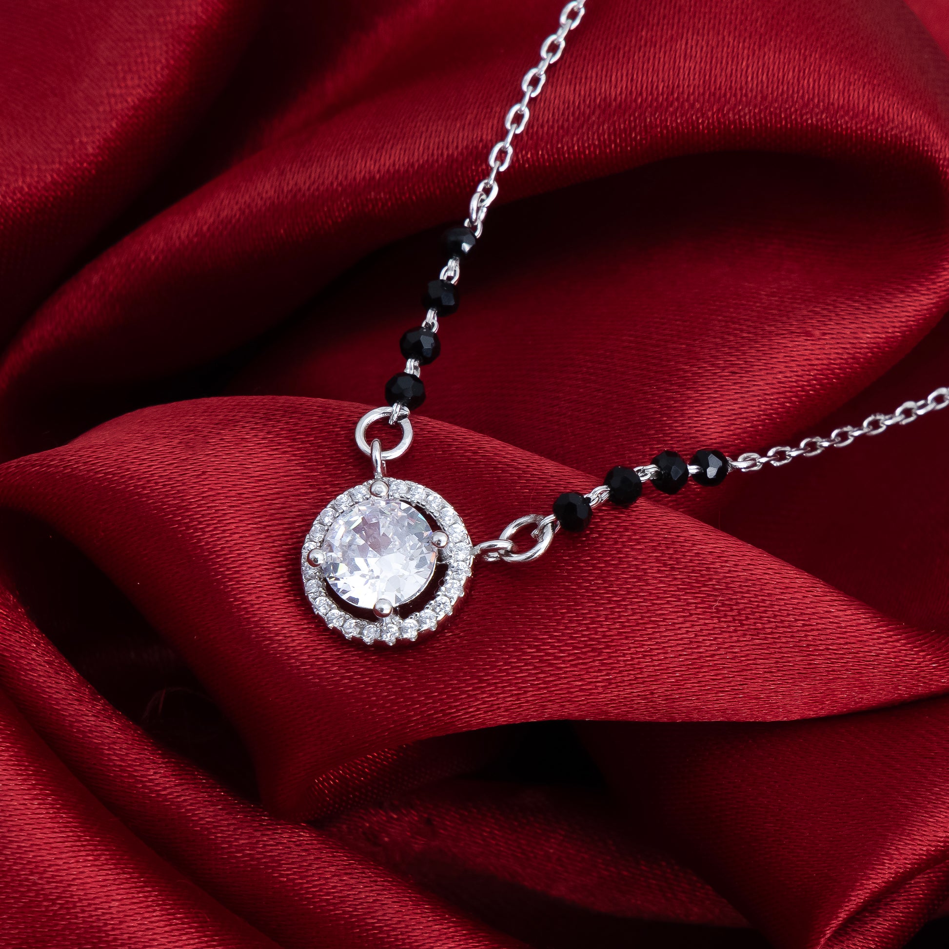 Sterling Silver Center Big CZ Stone Mangalsutra for Girls