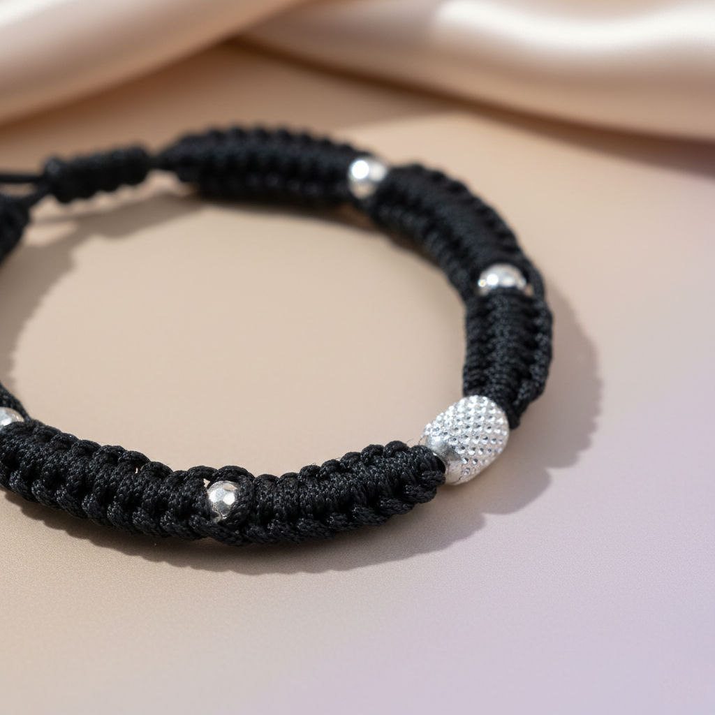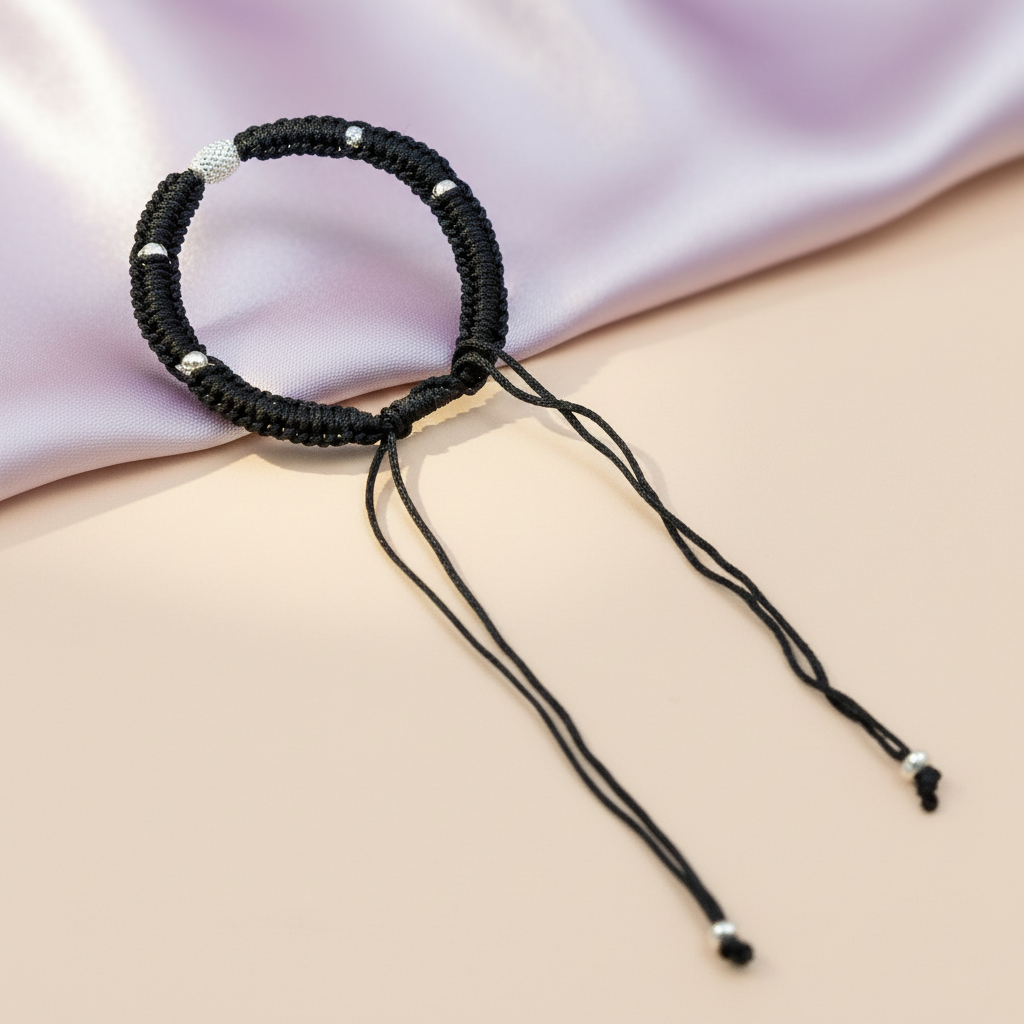 Traditional Silver Dhaga Anklet Crafted in sterling silver, this dhaga anklet embodies timeless Indian jewellery craftsmanship. The delicate twisted thread design—characteristic of traditional dhaga work—creates an elegant, understated aesthetic that complements both everyday wear and festive occasions. Lightweight yet durable, it drapes gracefully around the ankle with authentic artisanal appeal. Perfect for those who appreciate heritage jewellery with contemporary wearability.