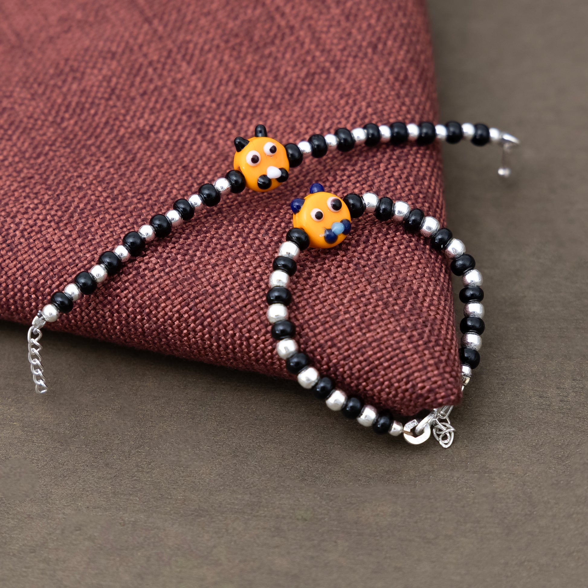 Yellow Playful Silver & Black Beaded baby Bracelet